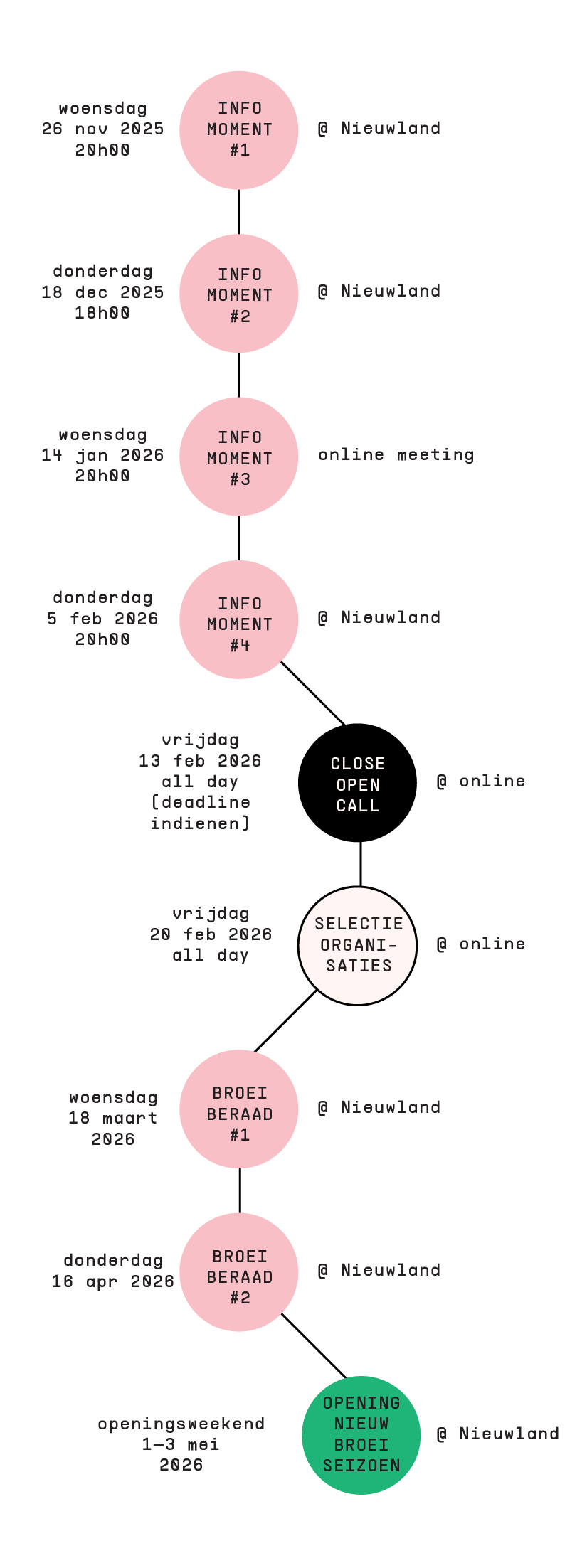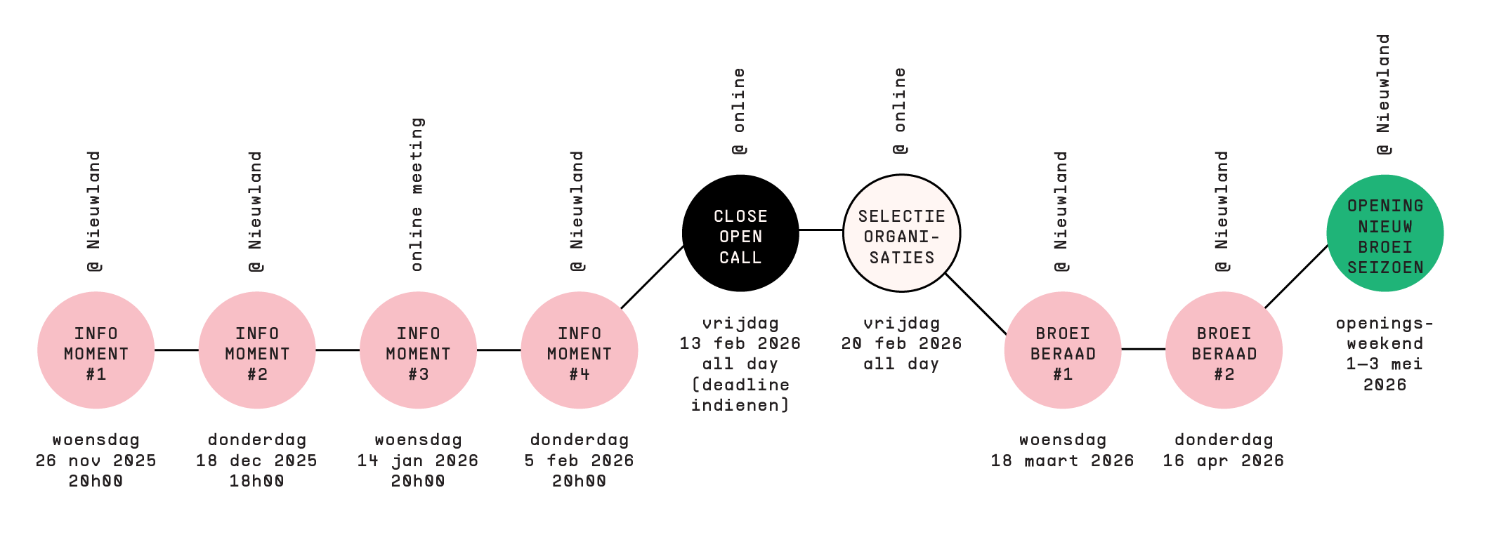 We will send you a confirmation mail with further information about the traject, meetups, worksessions and timeline!